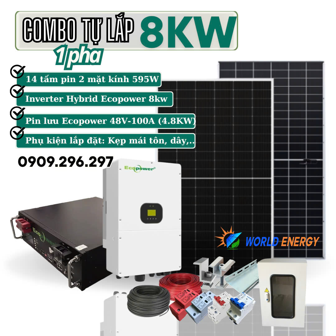 - Bộ biến tần lưu trữ (Hybrid) Ecopower 8KW: 1 bộ